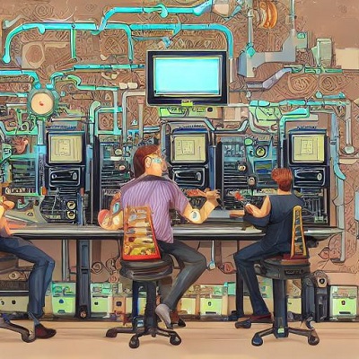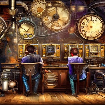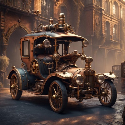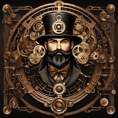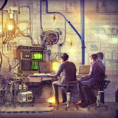 Prompt: Create a steampunk soldier with a laptop hacking a tank.