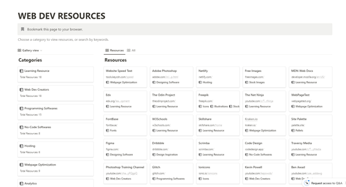 My Notion based workflow resource that gives me access to tools to help create great web development solutions.
